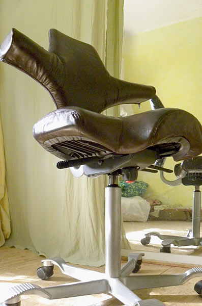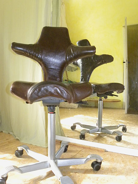 Neubezug eines hochwertigen Bürodrehstuhls mit Ziegenleder