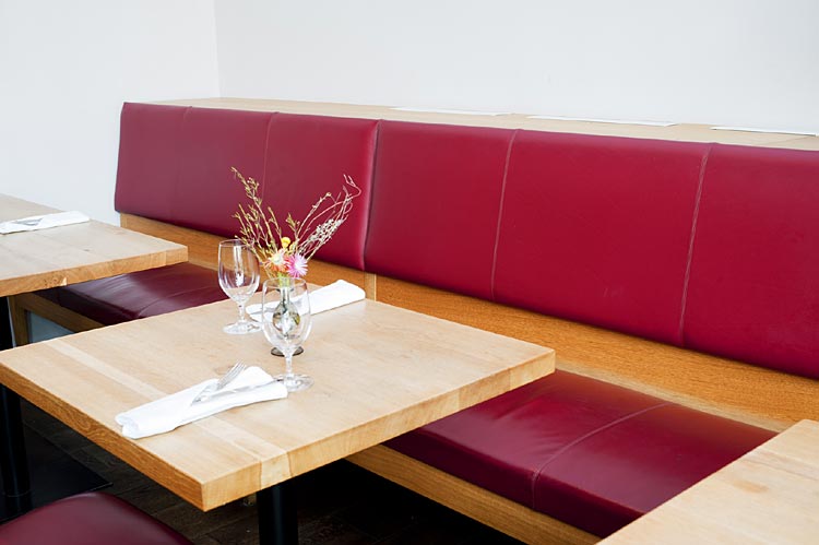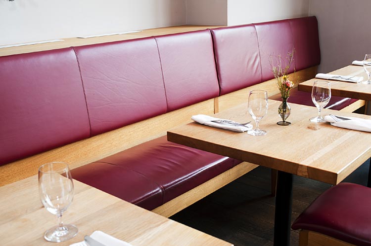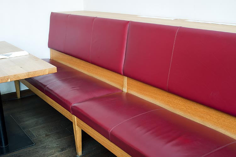 Komplettbezug des Sitzmobiliars mit Polsterstoff: Stühle, Sitzbänke & Barhocker