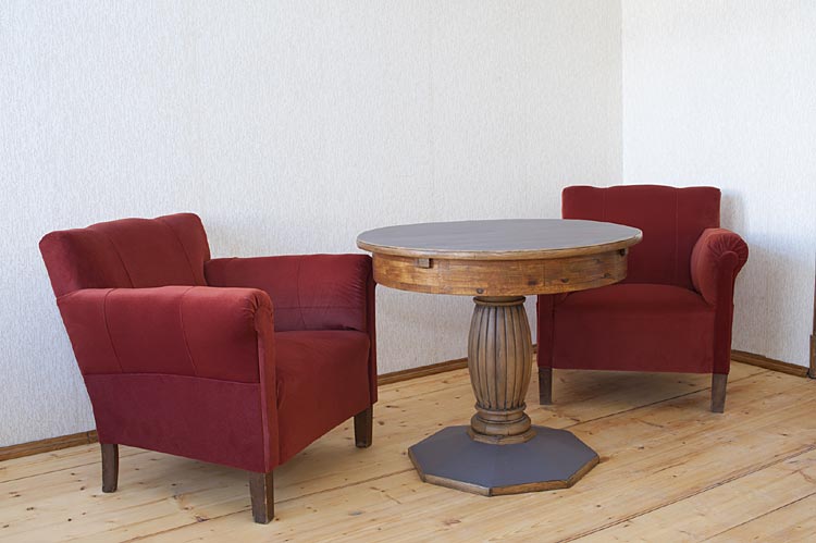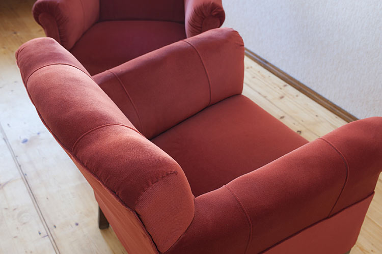 Neubezug zweier Sessel für die gemütliche Ecke einer Pension